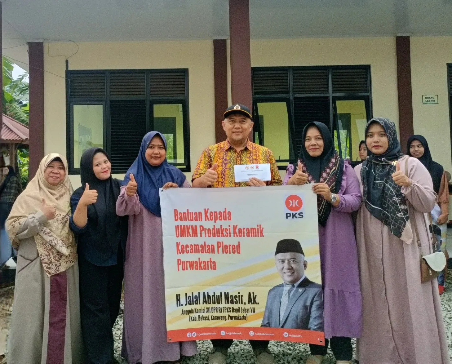 Garisjabar.com- Anggota DPR RI Komisi XII Fraksi PKS Dapil Jabar VII, meliputi Kabupaten Bekasi, Karawang dan Purwakarta, Haji Jalal Abdul Nasir menyalurkan bantuan kepada pelaku UMKM industri keramik di Desa Anjun, Kecamatan Plered, Kabupaten Purwakarta, Senin (5/5/2025).