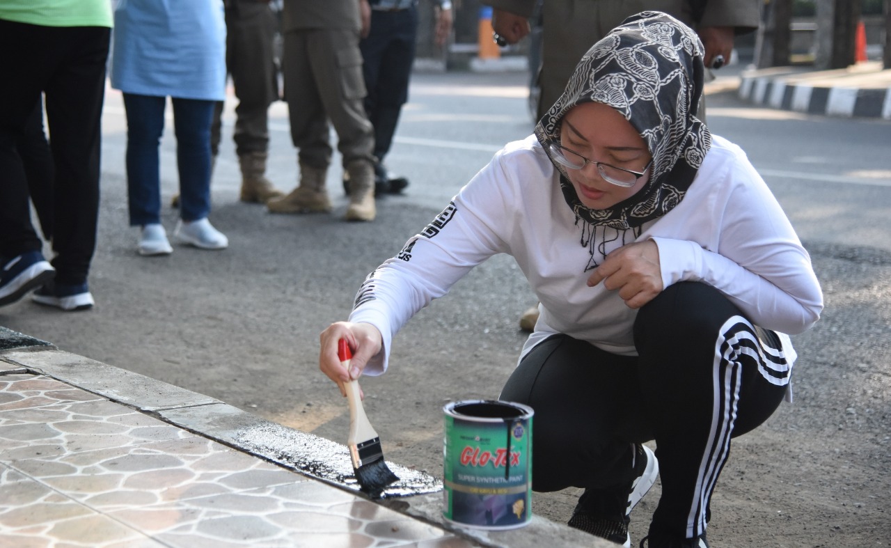 Garisjabar.com- Aparatur Sipil Negara (ASN) di Kabupaten gelar kegiatan “ngapur” atau pengecatan pada kanstin trotoar sebagai tanda cinta untuk Purwakarta.