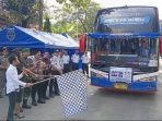 Bupati Purwakarta, lepas 4 unit bus mudik gratis ke Jawa Tengah, dan Jawa Timur.