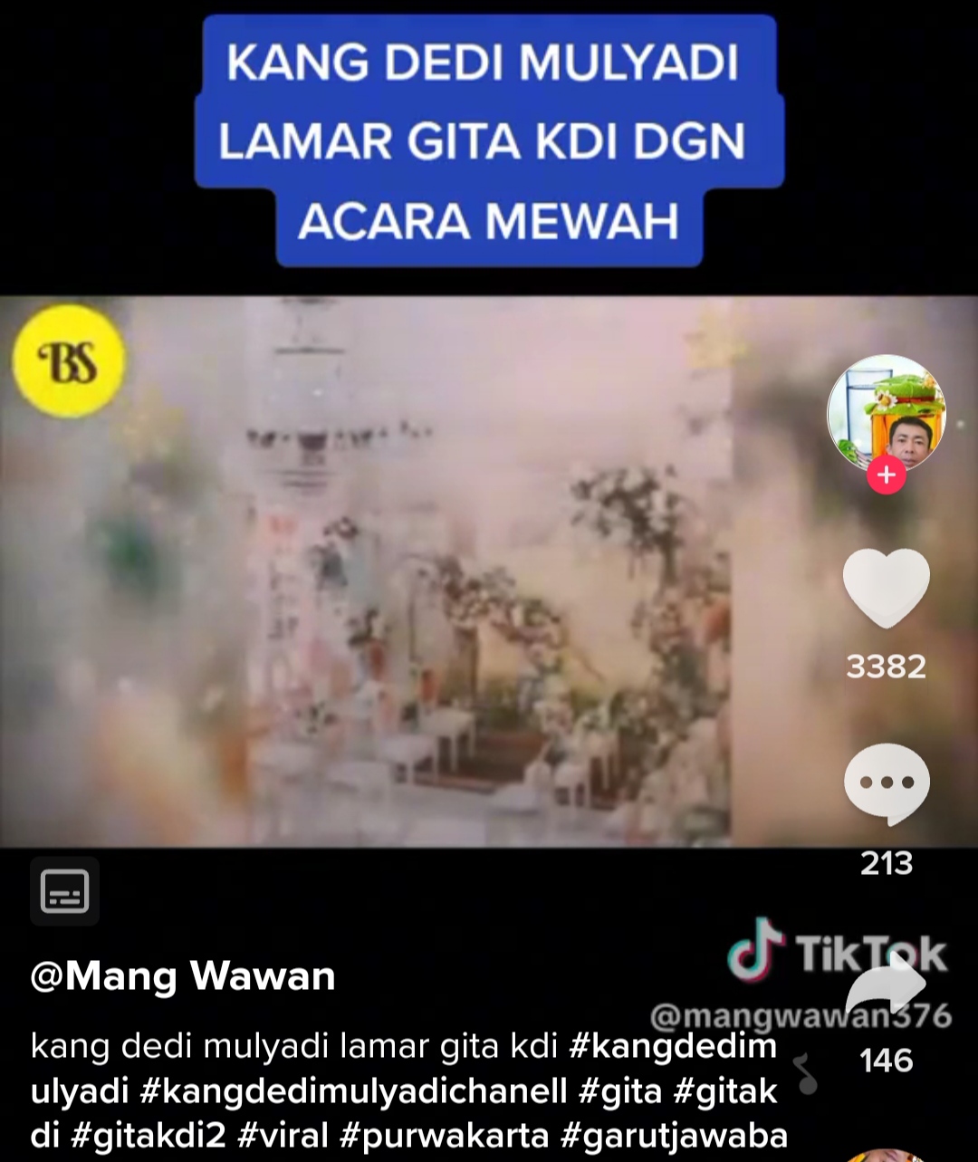 PURWAKARTA, garisjabar.com- Unggahan di sebuah media sosial tik tok belum lama ini. Yang menarasikan bahwa Wakil Ketua Komisi IV DPRD RI dari Fraksi Partai Golkar, Dedi Mulyadi telah melamar Gita KDI disebuah hotel mewah.