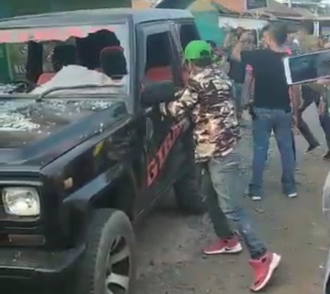 Selain itu, satu unit mobil bernopol T 1305 VR hancur kaca bagian depan dan samping diduga dirusak. Berdasarkan video yang tersebar nampak anggota ormas merusak mobil tersebut.