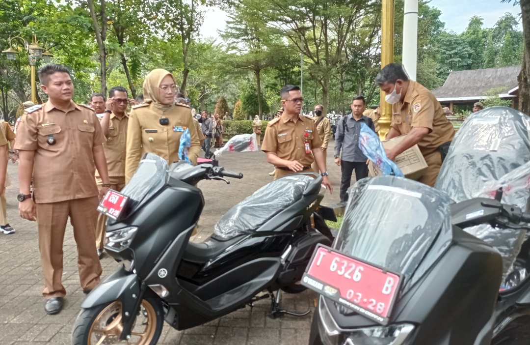 Agus Yasin menyebutkan, mengenai pembagian kendaraan berupa motor dinas 183 untuk kepala desa termasuk rencana penggantian mobil-mobil dinas untuk 17 Kecamatan.
