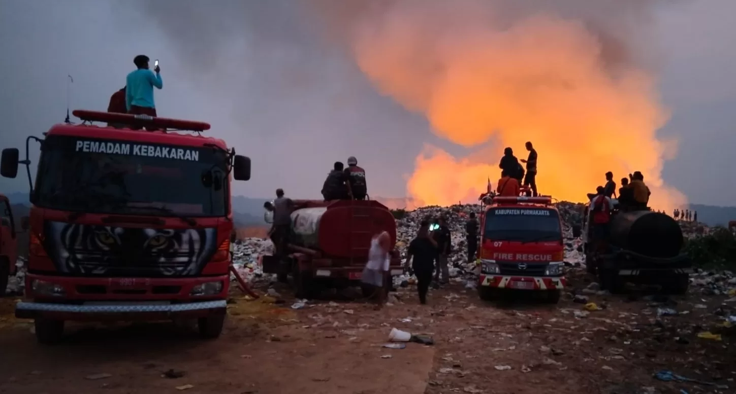 PURWAKARTA, garisjabar.com- Sejak Kamis sore lalu, tumpukan sampah di Tempat Pembuangan Akhir Cikolotok Kabupaten Purwakarta terbakar.