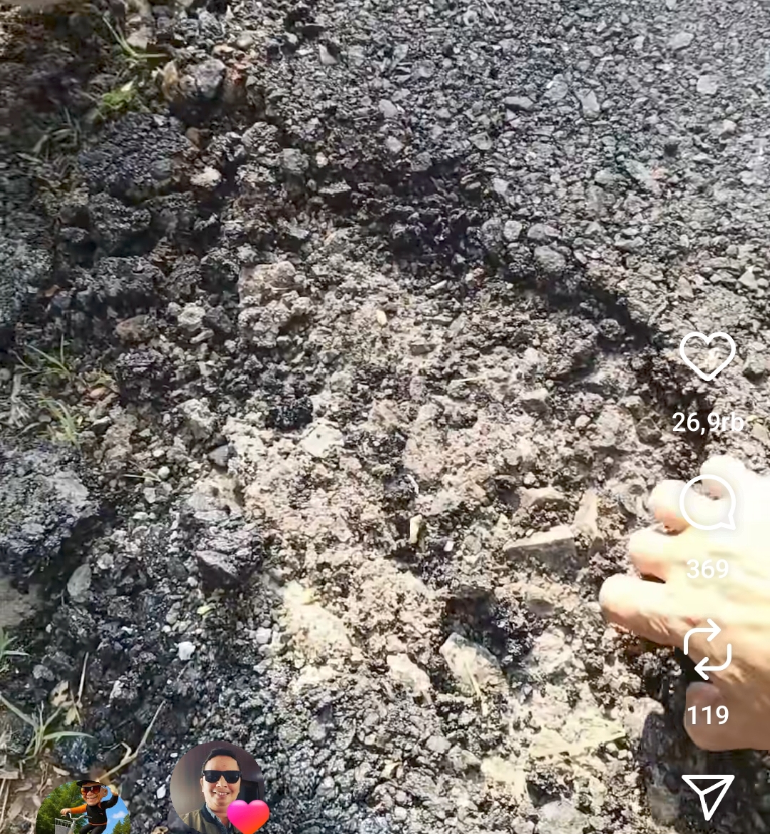 Dalam sebuah video yang diunggah melalui akun Instagram pribadinya, omzein bupatiaing menemukan pembangunan jalan yang di hotmix mengelupas.