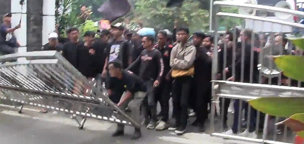 Namun karena sempat dihalangi untuk masuk, sehingga pengunjuk rasa memaksa masuk dengan menjebol pagar kantor bupati hingga roboh.