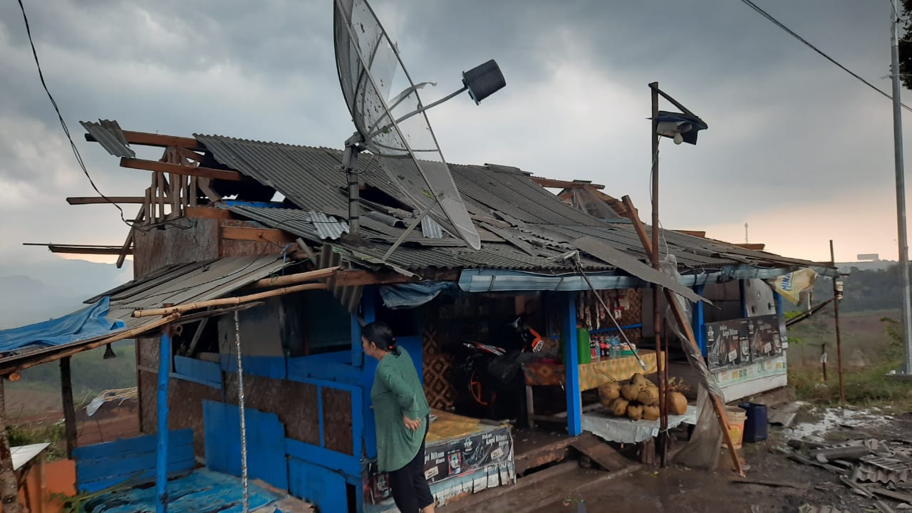 “Mulanya cuaca cukup cerah. Namun tiba-tiba, hujan turun disertai angin kencang. Warung saya ikut rusak dibuatnya. Kayaknya puting beliung. Soalnya anginnya kencang banget,” kata dia.