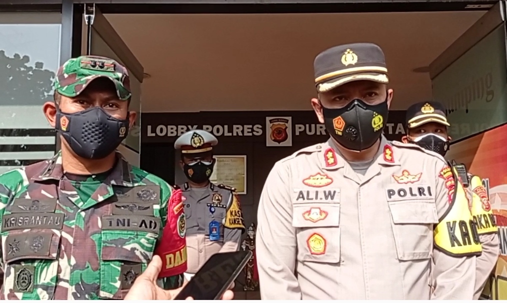 Kapolres Purwakarta, AKBP Ali Wardana didampingi Dandim 0619/Purwakarta, Letkol Arm Krisrantau Hermawan di Mapolres Purwakarta, pada Ju’mat (16/7/2021).