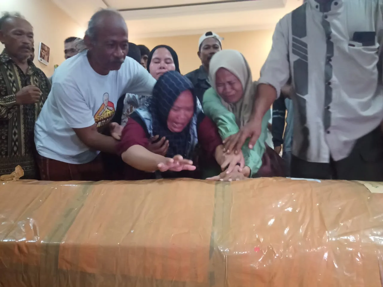 Ratna, istri korban histeris ketika peti jenazah almarhum tiba di rumah duka. Bahkan saudara perempuan jatuh pingsan.